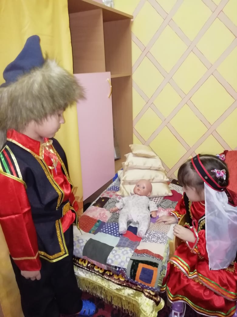 Воспитатель Халикова А.Ф. в средней группе на тему «Башкирский язык так сладок и богат» организовала экскурсию в мини-музей «Башкортостан - мой край родной». Ребята с увлечением и интересом играли в сюжетно-ролевую игру «башкирский быт».